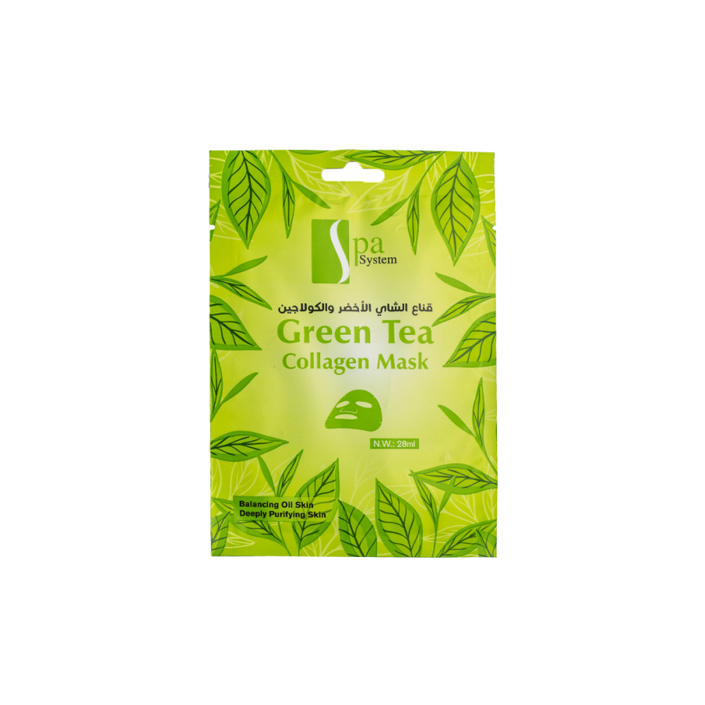 Revitalize your skin with the Spa System Green Tea Collagen Facial Mask, enriched with the natural power of green tea and collagen. This ultra-soothing 28ml sheet mask detoxifies, tones, and deeply hydrates your skin, leaving it fresh, firm, and radiant. Ideal for daily skincare or a relaxing self-care ritual!