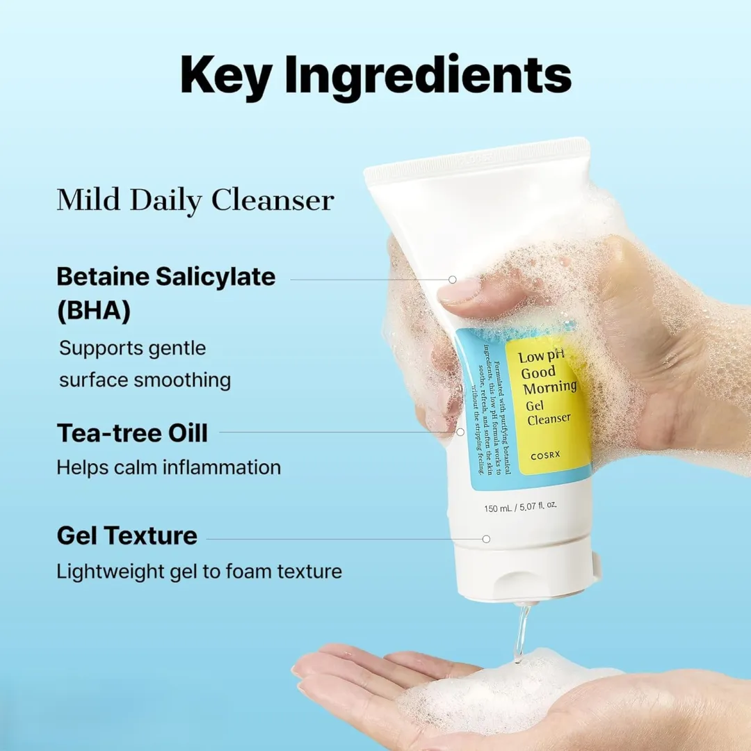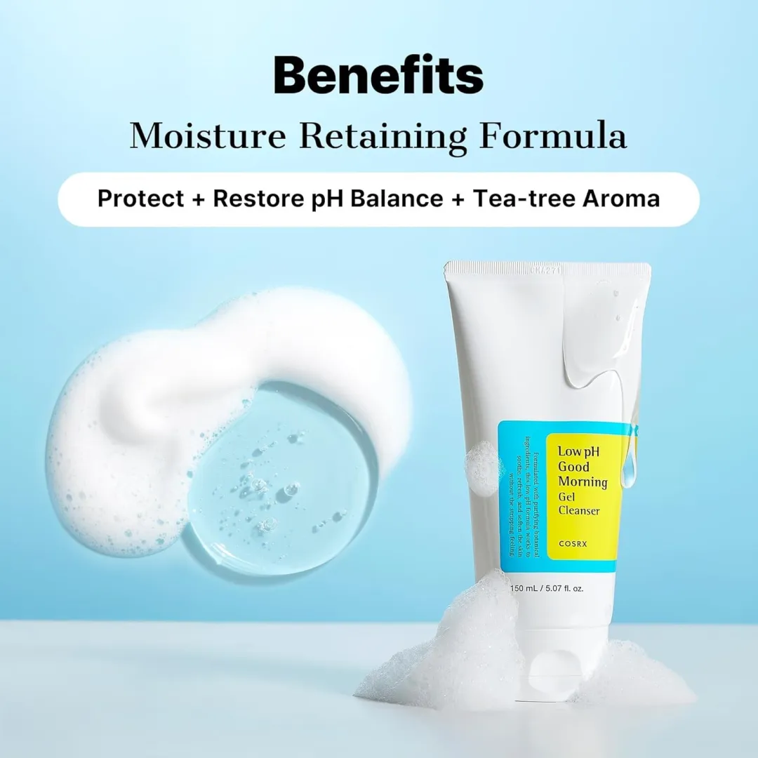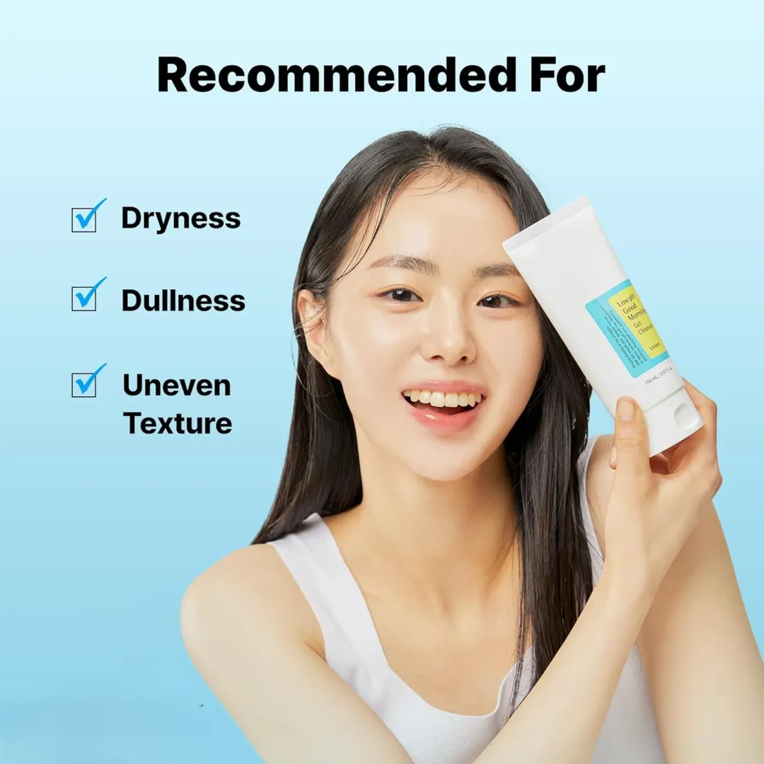 Cosrx Low Ph Good Morning Gel Cleanser clears all skin types delicately but deeply, casting away all sorts of daily impurities. Thus, this everyday essential balances even the most sensitive complexions due to its acidic pH level. In fact, the formula rids the skin of blemishes and imperfections without causing irritation or redness. All in all, it speeds up the epidermis renewal while still preserving the skin's natural moisture barrier. To the same extent, shielding from free radicals and external threats ends up enhancing the skin's overall condition. Moreover, you'll notice immediate improvements after each application, leading to a refreshing finish. In short, it helps block various environmental aggression and at the same time it removes excess sebum. To sum up, extra luminous, clean, and awakened skin cells are ready to thrive on any occasion.