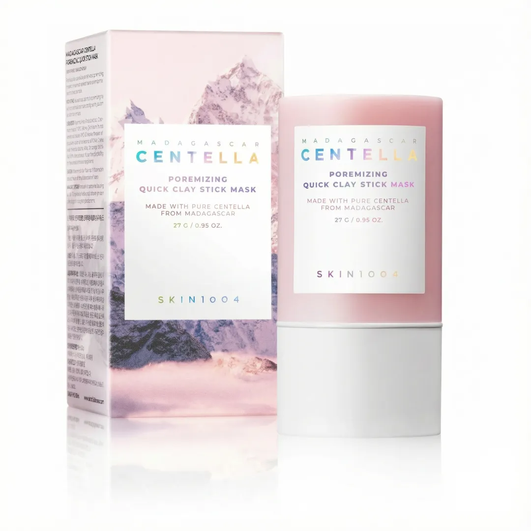 Skin1004 Madagascar Centella Poremizing Quick Clay Stick Mask quickly and conveniently cleans clogged skin and removes sebum and impurities from pores without irritation, resulting in clean and refreshed skin. With its powerful sebum absorption ability, this product contains 5 types of clay, including white mud and 18 percent of kaolin. It adheres closely to the skin, eliminating excess sebum that clogs the pores, causing the skin to appear smoother and more refined. Comes in a pack of 27 g.