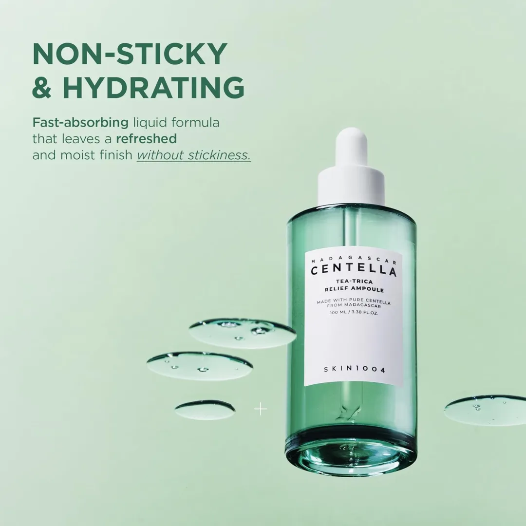 Experience the ultimate in soothing care with SKIN1004 Tea-Trica Relief Ampoule. This 100ml ampoule is specially formulated with Centella Asiatica Extract to provide intense hydration and calming relief for sensitive skin. Designed to strengthen the skin's natural barrier, it helps to enhance resilience and reduce overall sensitivity. The ampoule comes with a face scrubber to improve your application process, allowing for gentle exfoliation and optimal absorption of the product. With a lightweight, non-irritating formula, this ampoule is perfect for daily use, leaving your skin feeling hydrated, refreshed, and balanced without any greasy residue. Integrate SKIN1004 Tea-Trica Relief Ampoule into your skincare routine for a noticeable improvement in skin comfort and health.